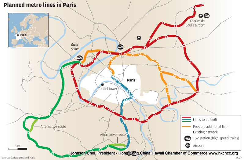 Hong Kong and mainland firms were encouraged yesterday to take part in the biggest urban development project in Paris for 150 years, with €35 billion (HK$370 billion) earmarked for transport infrastructure alone, including a 140-kilometre-long driverless metro system. French urban affairs minister Maurice Leroy, told potential investors, developers, architects and consultants the aim was to make the City of Light ''the city-world of tomorrow'' and to build an ''innovative and efficient eco-city that respects its people and its cultural heritage''. Speaking at the MIPIM Asia real estate conference in Hong Kong, Leroy said he remained confident the Grand Paris project would go ahead despite concerns about debt worries in several euro-zone economies. ''The impact [from the debt problems] has not been that great. Like Hong Kong we have been able to weather the crisis. Construction is going on as planned,'' he said. He also confirmed that a French architects association would be visiting Hong Kong soon to exchange ideas on the development of the West Kowloon cultural district. ''French construction experts are proud to have in part contributed to the construction of your city, and our architects will be pleased to discuss with you the design of the Hong Kong of tomorrow,'' said Leroy, who is in overall charge of the Grand Paris scheme. Despite having two meetings with secretary for development Carrie Lam Cheng Yuet-ngor, he would not be drawn into comparing progress of the Grand Paris scheme, which was first proposed in 2007, with the West Kowloon or the Kai Tak redevelopment. ''I don’t interfere in Hong Kong politics,'' the minister said. But he pointed out there had been a ''great deal of public debate'' about the Grand Paris scheme and ''everyone in France…especially the president [Nicolas Sarkozy]'' was confident about the project. These discussions had involved central and regional government, the public and non-governmental organisations and Leroy added there was consensus among political groups on all sides of the political spectrum. The French government gave final approval for the Grand Paris project at the end of August. The scheme is seen as Sarkozy’s lasting contribution to France, despite some political wrangling. Leroy said there was no danger it would be cancelled due to budget cuts – ''it has been guaranteed for the future''. He said 10 teams of foreign and French architects, including Britain’s Rogers Stirk Harbour + Partners, had already prepared concept plans following an international design competition and these were being incorporated into final planning. Individual aspects of the Grand Paris scheme included ''20 billion euros to be invested by 2025'' on the construction of a new metro network linking inner city and suburban areas of Paris. The total cost of the metro would be at least €32.4 billion and would be co-financed by central and local governments and investors. The expanded metro network ''will open up this great city of Paris and its entire region, linking the airport to the centres of industrial and academic excellence,'' Leroy said. In addition, more than 70,000 new homes would be built each year, ''more than double the annual rate of construction'', to meet a planned target of 1.5 million homes. He thought the creation of research and development centres at Saclay, south-west of the city, ''would be very interesting for Chinese investors''. The La Defense area was also the focus of a massive building programme with five office towers due for completion next year and a further 11 office towers, hotels and arenas due to be finished between 2013 and 2016. Conscious he was talking to potential investors, developers, architects and consultants, Leroy said the Grand Paris scheme was ''an ambitious project for which the state has put in place the means to its realisation'' and create significant economic benefits.