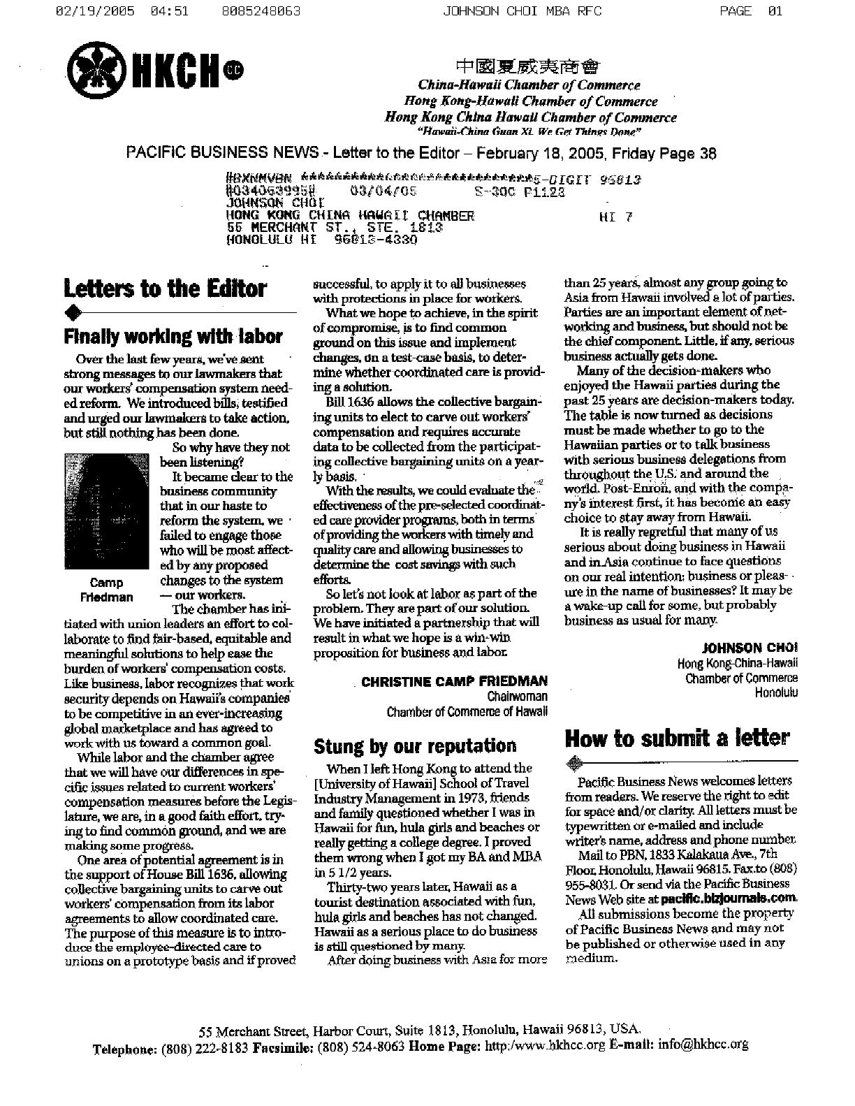Dear Hong Kong.China.Hawaii Chamber of Commerce Members: